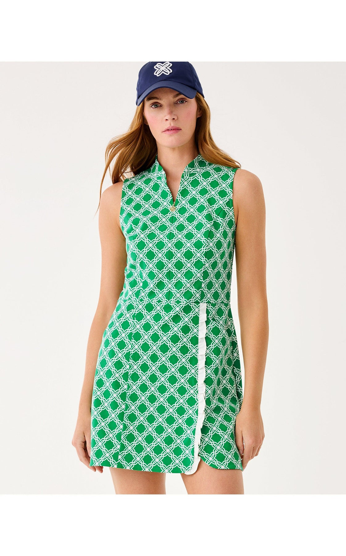 Regular price $198.00UPF 50+ Luxletic Catarina Ruffle Dress Bamboo Green Boo Green Open Butterfly Pattern