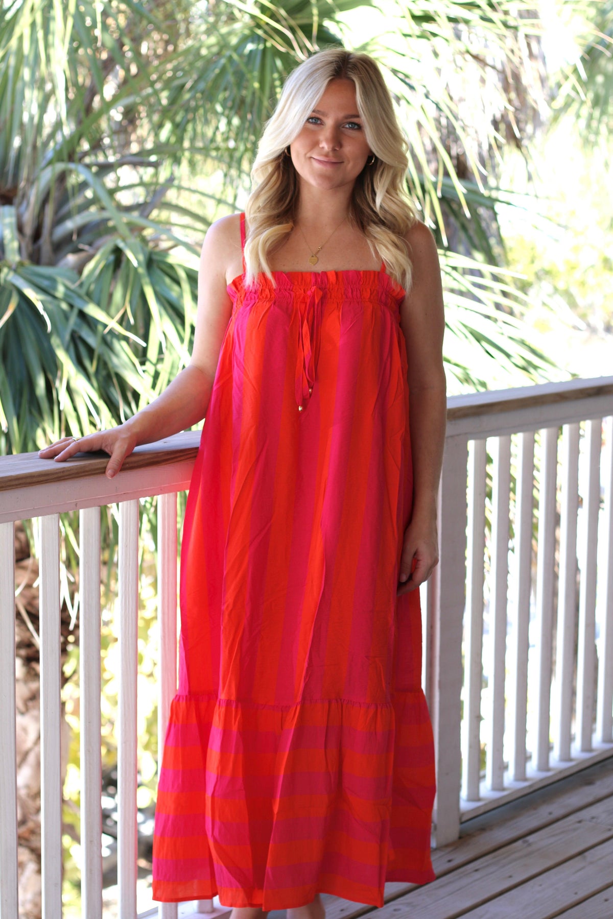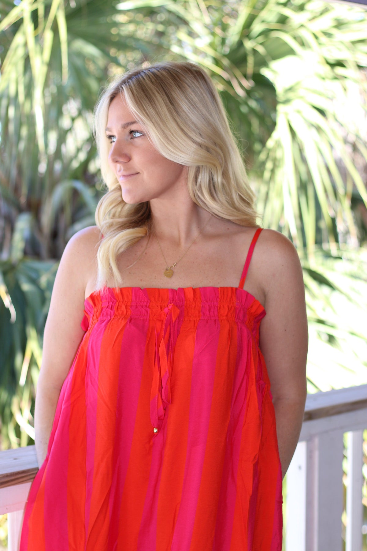 Caroline Cabana Striped Dress Fuchsia
