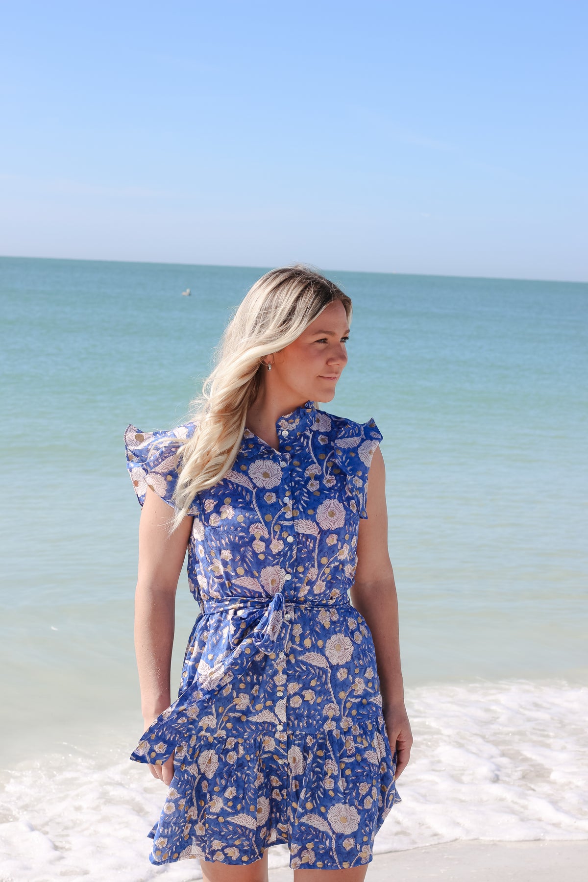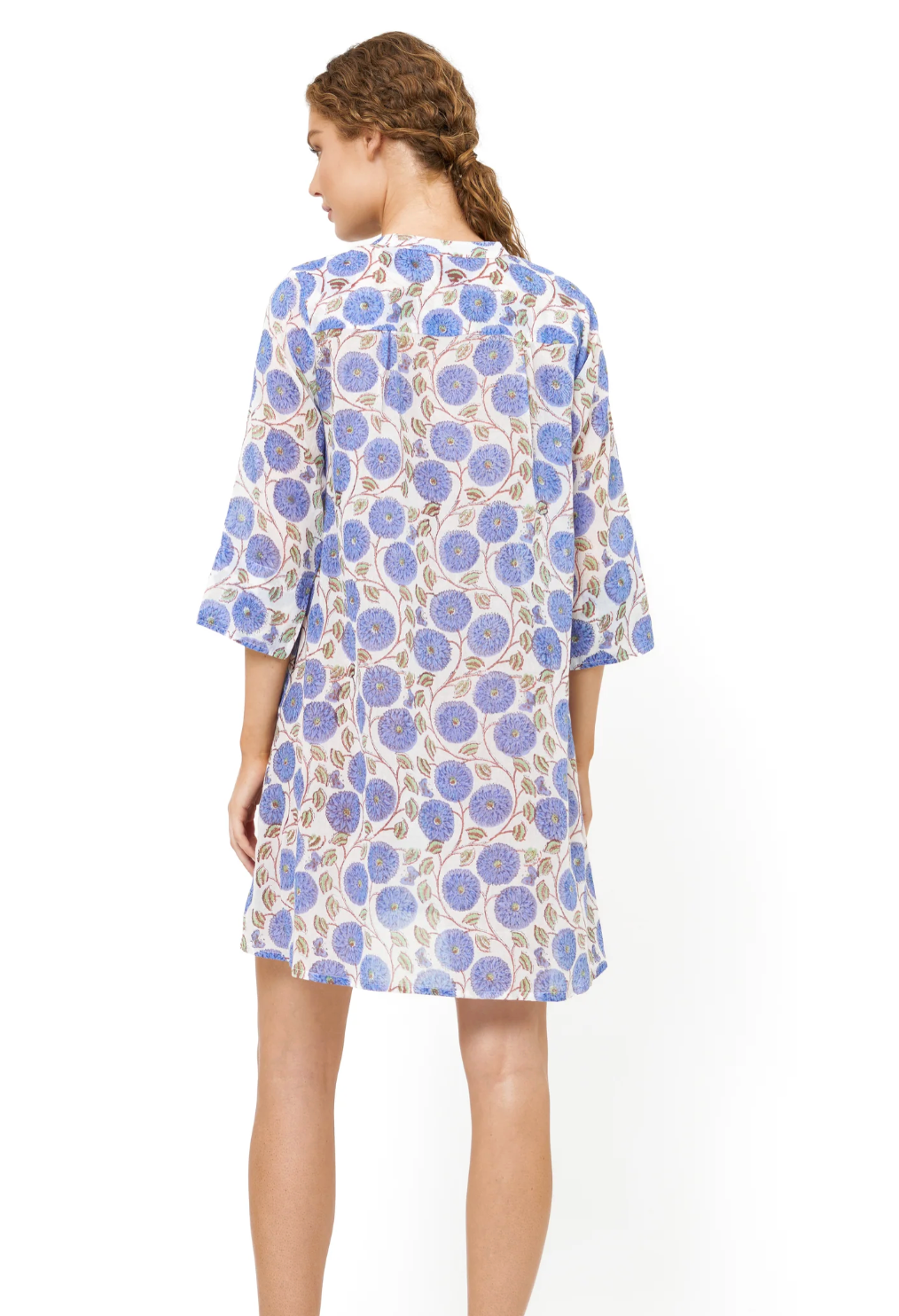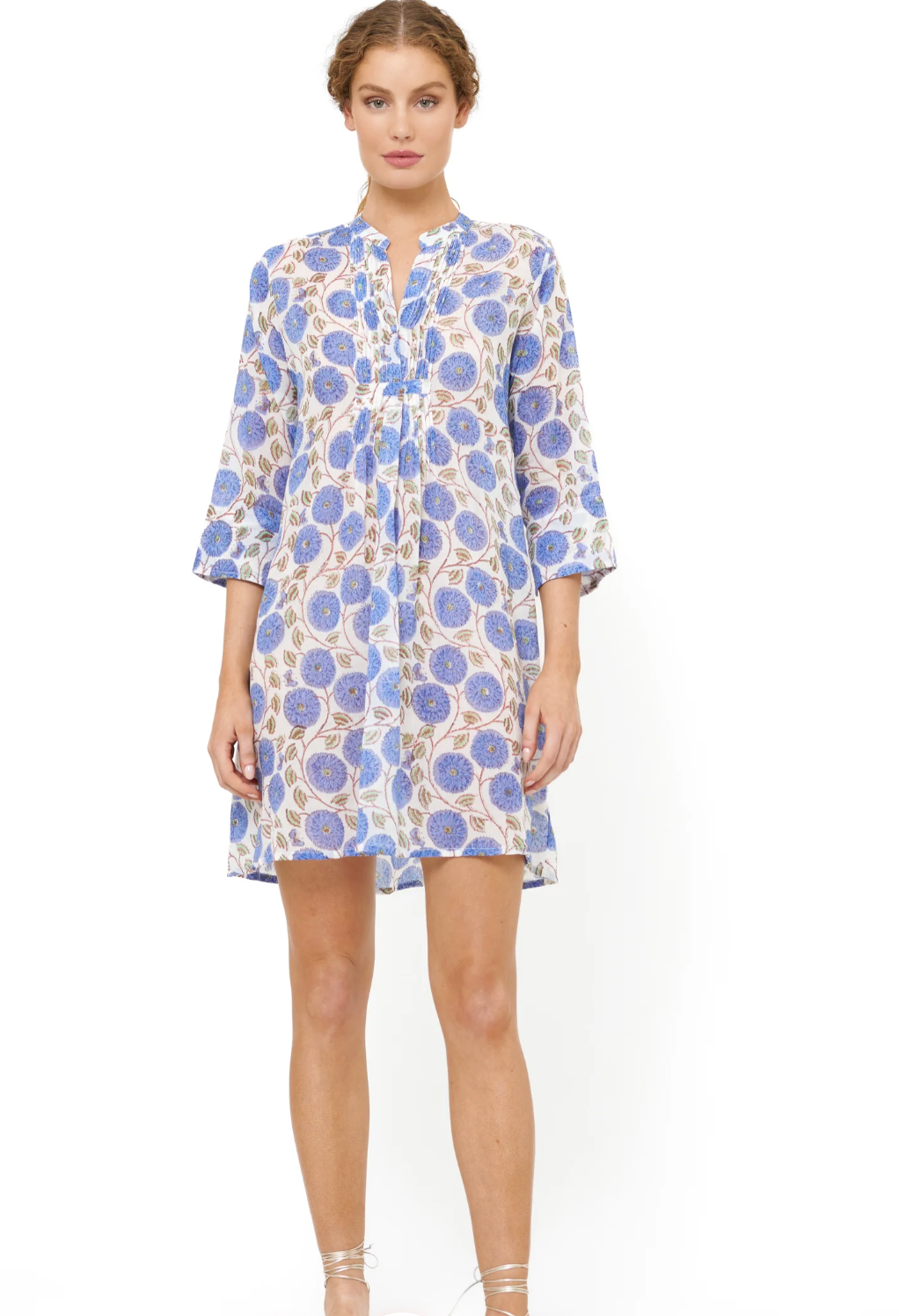 Regular price $238.00Artistry in motion. Periwinkle florals are meticulously hand-block printed onto airy cotton voile, punctuated by artisanal pintucks. A silhouette that captures the serene clarity of coastal light.