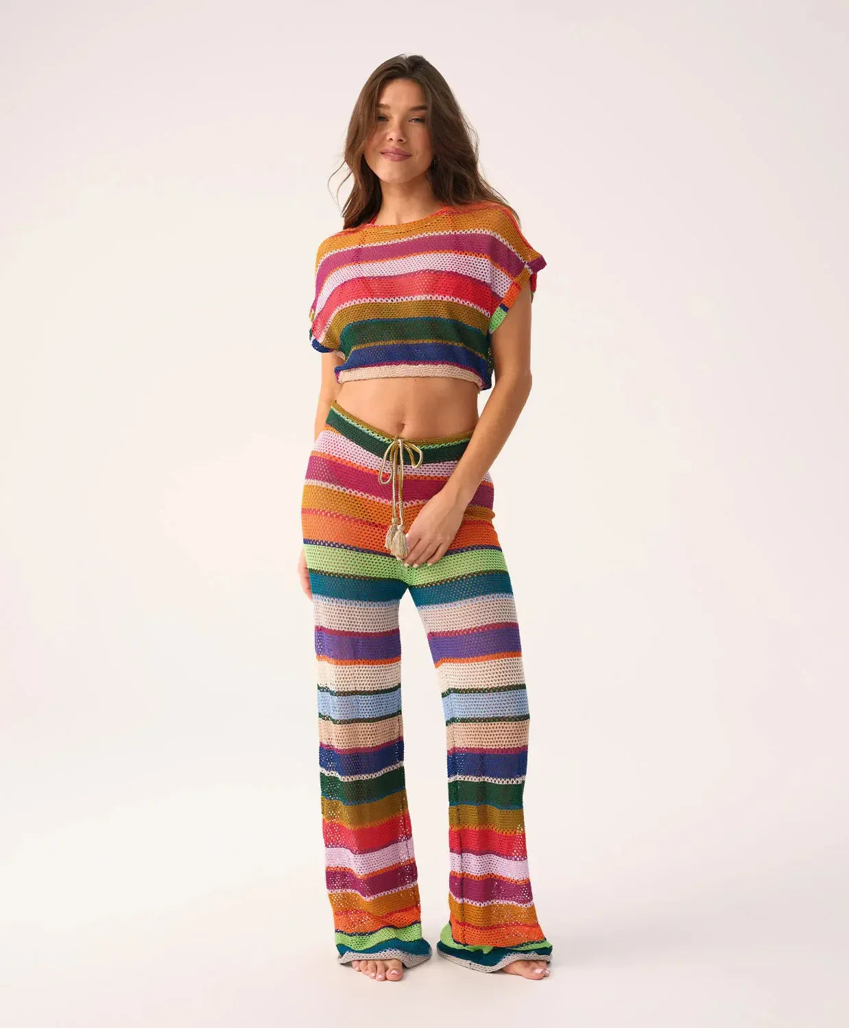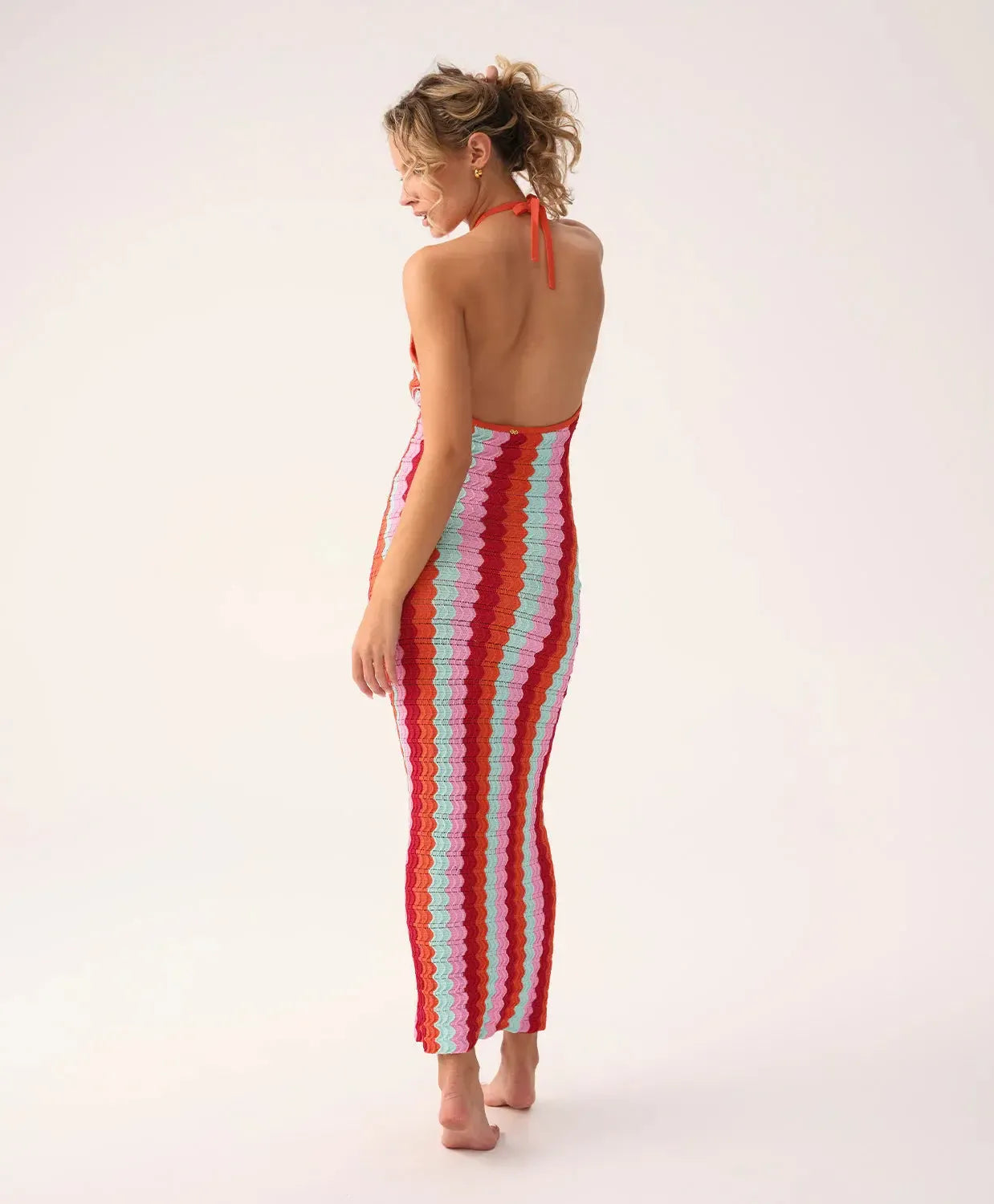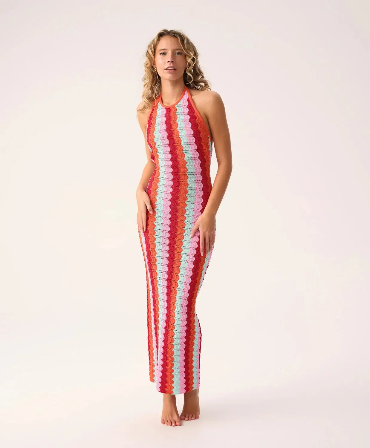 Celebrate your individuality with the Scarlette Margot One Piece, crafted in a vibrant pink, red, and white chevron pattern woven with shimmering gold lurex. Featuring 24k gold-dipped hardware, crisscross straps, and a flattering neckline that stays in place all day, this suit brings bold color and confident style to every sun-filled moment.
