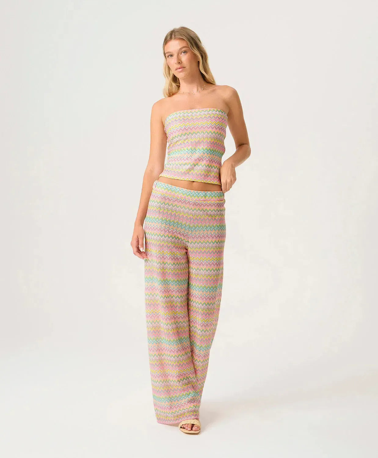 The Rainbow Meg High Waist Pant was made to stand out. Crafted from striped rainbow crochet, this statement piece adds color, texture, and personality to any resort look. Pair it with the matching bikini or one-piece for a coordinated moment, or style it solo and let the pants do all the talking. Bold, fun, and unmistakably PQ.