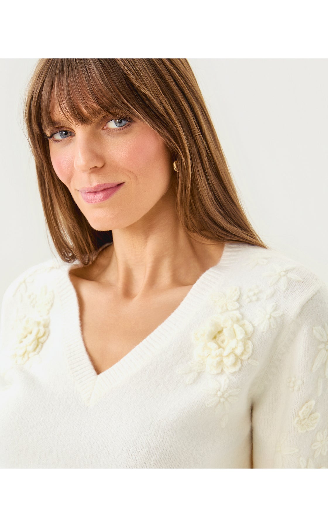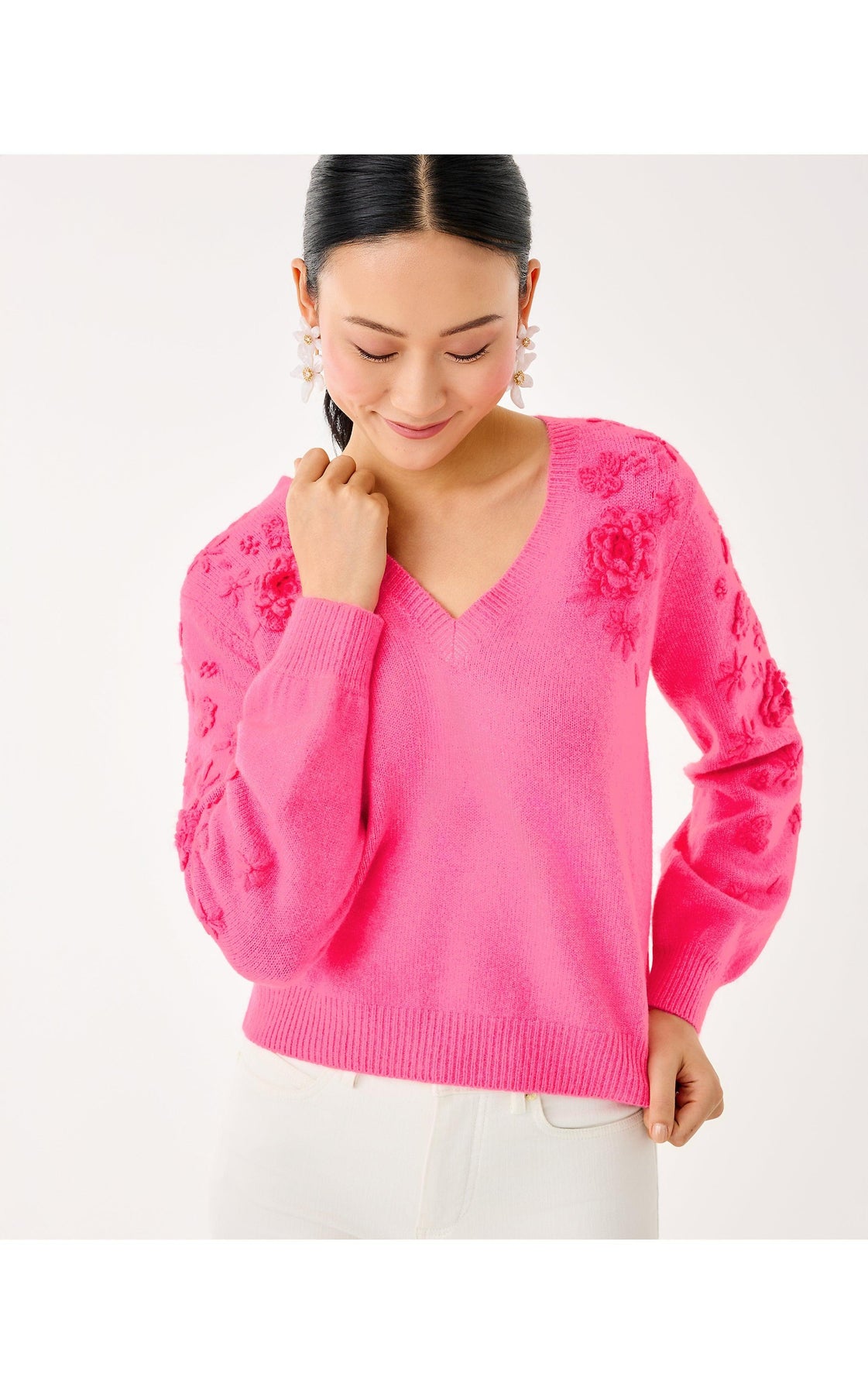 Straight fit, v-neck, cable knit sweater with stripe details.